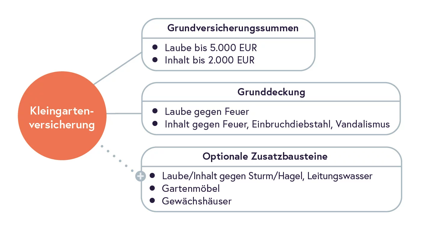 - Inhalt der Laube gegen Feuer-, Einbruchdiebstahlschäden einschließlich Vandalismusschäden bis 2.000 EUR